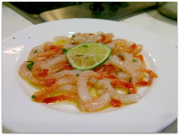在西西里島的第一天,我們在巴勒摩的餐廳吃到很棒的生蝦,以後每餐都必點一盤﹗Marinato(油浸)是西西里菜的常見做法,將生魚、生蝦等可生食的新鮮海鮮浸在高品質的橄欖油裡醃漬。蝦子是這道菜的主角,必須是非常新鮮而且可以生食的等級。歐洲常見的螯蝦在台灣不易買到,台灣較常見的生食用蝦是甜蝦,一般生魚片專賣店都有賣,牡丹蝦也不錯但成本較高。 另外油浸生蝦不宜做得太酸,因此檸檬不要擠汁,改用檸檬切片增加香氣就好。總之這道菜做法不難,食材的品質才是關鍵。 材料: